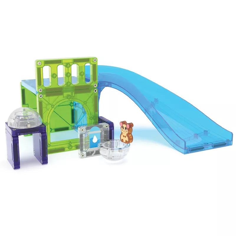 Contenido: 13 piezas magnéticas entre las que se incluye un hámster, bola magnética, 5 cuadrados pequeños, 2 cuadrados grandes, 1 cuadrado con ventana, 1 valla, 1 puerta y un tobogán ✅
