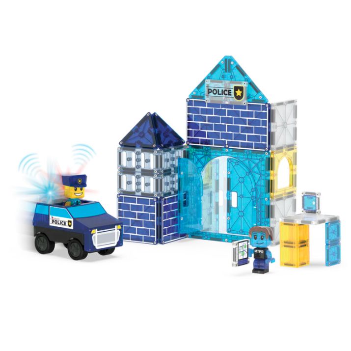 Número de piezas: 35 piezas magnéticas variadas para construir la estación de policía y más