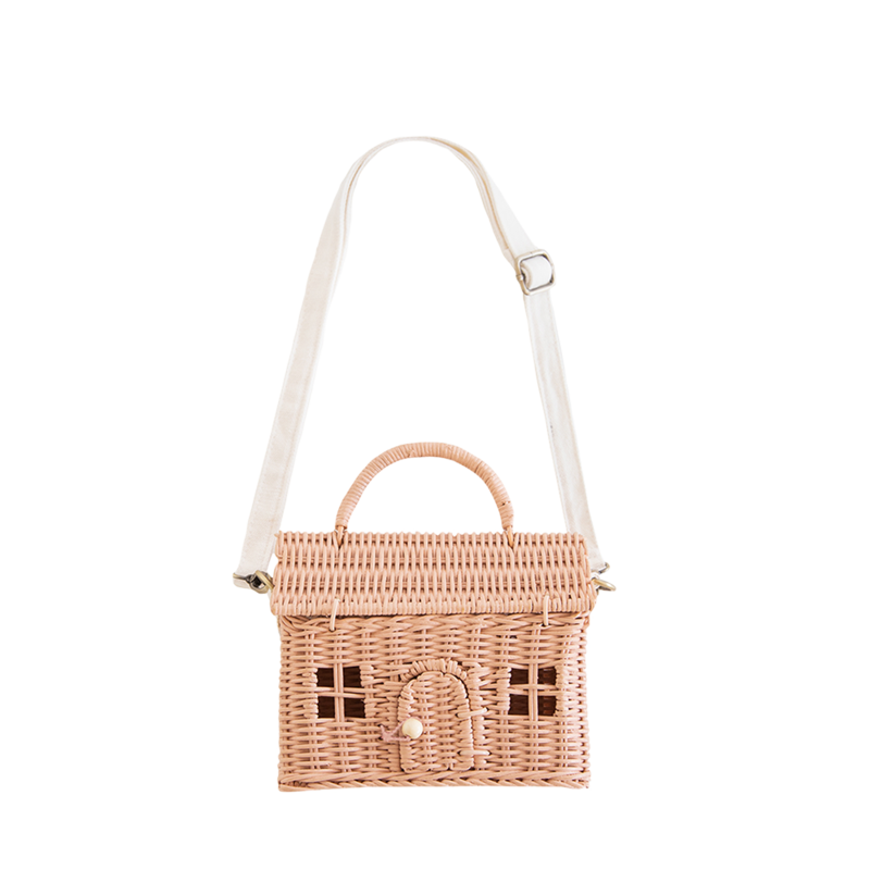 Cuenta con una correa de tela extraíble y ajustable que lo convierte en un accesorio perfecto de juguete para cada aventura. Hecho a mano con ratán 100% natural, se le abre en el techo y la puerta para guardar fácilmente todas sus pequeñas cositas.