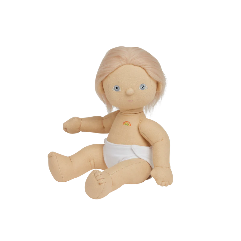 Las muñecas Dinkum están hechas con el algodón más suave y cómodo que existe, lo que las hace perfectas no solo para jugar, sino también para abrazar y dormir a su lado. Cuentan con los detalles bordados más dulces, desde sus ojos y boca, hasta el pequeño arco iris sobre su corazón.