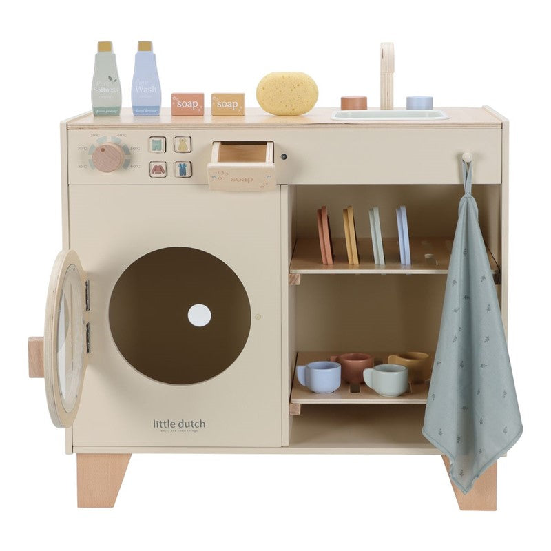 ¡Porque en casa todos pueden ayudar! La lavadora y lavavajillas de madera FSC Edición Limitada de Little Dutch transforman las rutinas del hogar en momentos de diversión y aprendizaje. Con su diseño realista, accesorios incluidos y materiales sostenibles, tu peque descubrirá lo reconfortante que es cuidar, ordenar y “limpiar” mientras desarrolla imaginación y autonomía.