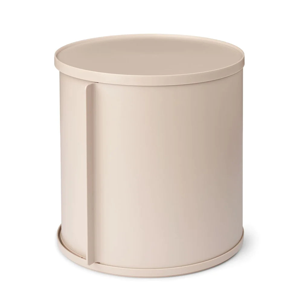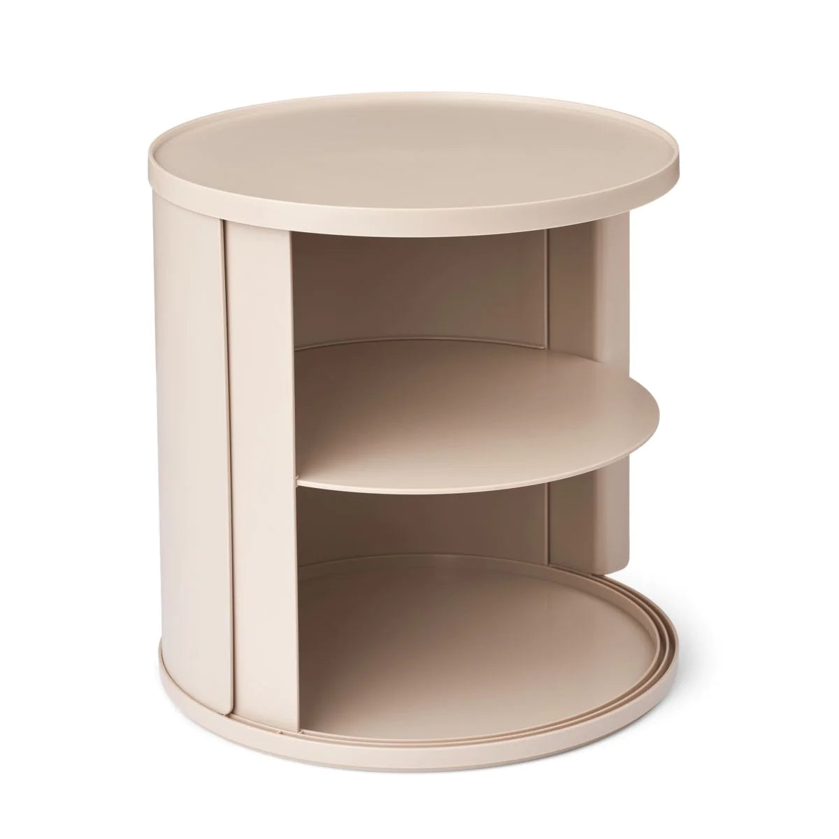 Una de las características más destacadas de esta mesa de noche es su solución de almacenamiento. La puerta corredera permite acceder cómodamente al interior y cambiar el lado de apertura según las preferencias y necesidades del usuario. El espacio interno es ideal para guardar libros, juguetes o cualquier objeto que desees mantener ordenado y al alcance de la mano.