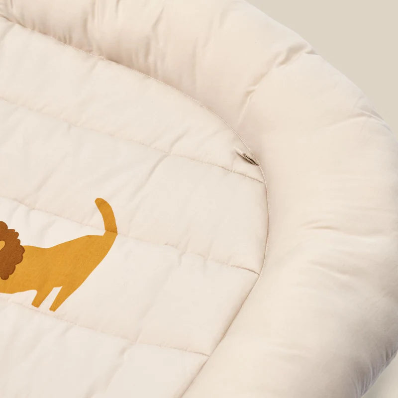 El borde elevado está diseñado para mantener al bebé seguro y cómodo mientras juega en la manta.
