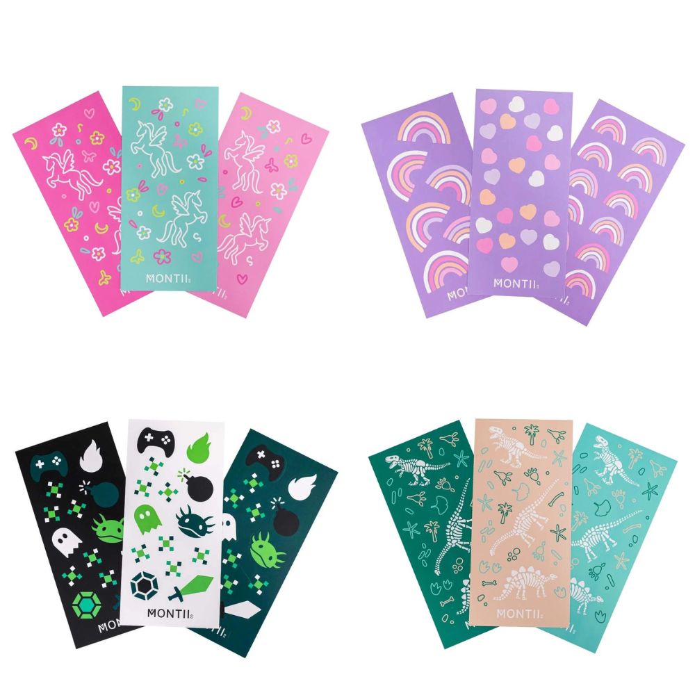 🎉 Diseño y Diversión Sin Límites Las pegatinas MontiiCo combinan perfectamente con los populares diseños de la marca, permitiéndote personalizar tu lonchera, botella o cualquier otro accesorio con un estilo único. ¡Es una manera genial de asegurarte de que los productos de tus peques sean tan originales como ellos! 🌟