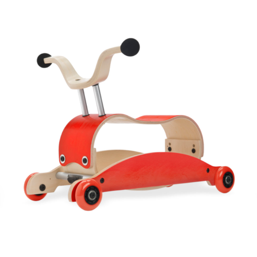 ¡Llamativo y multifuncional! Wishbone Mini Flip reinventa el clásico andador de madera para bebés.