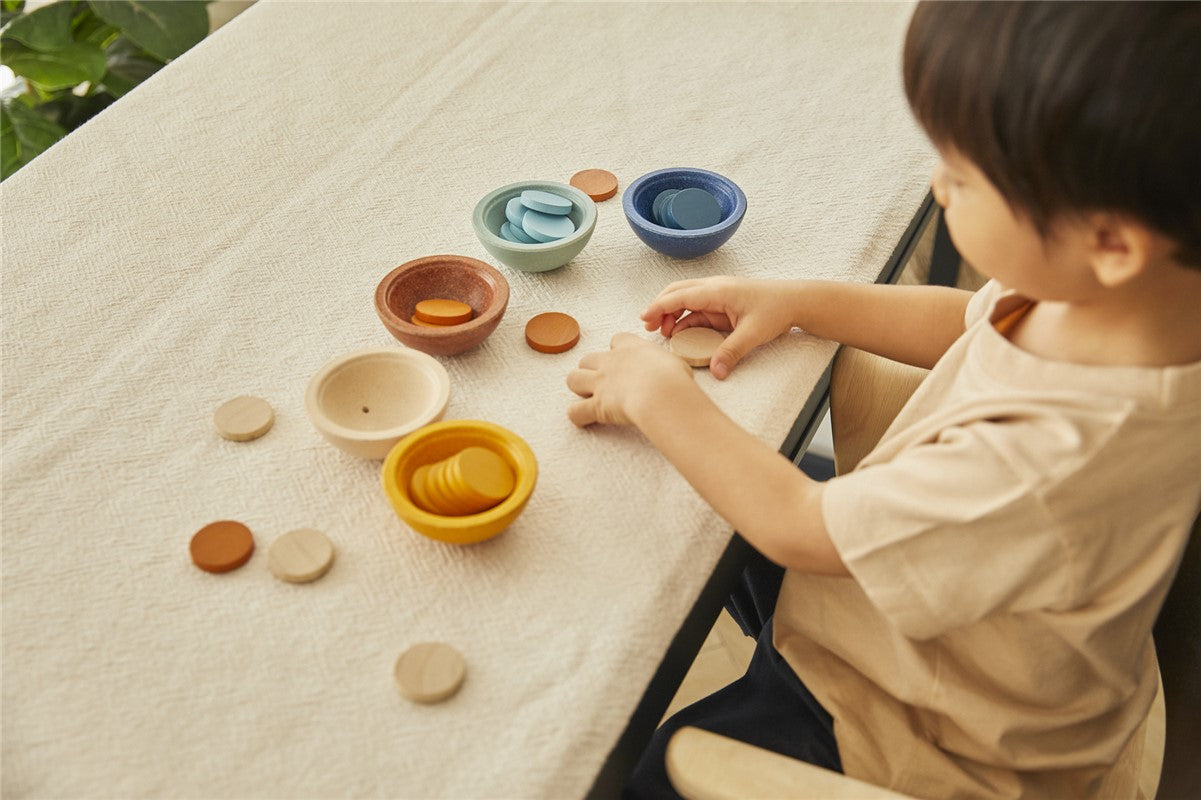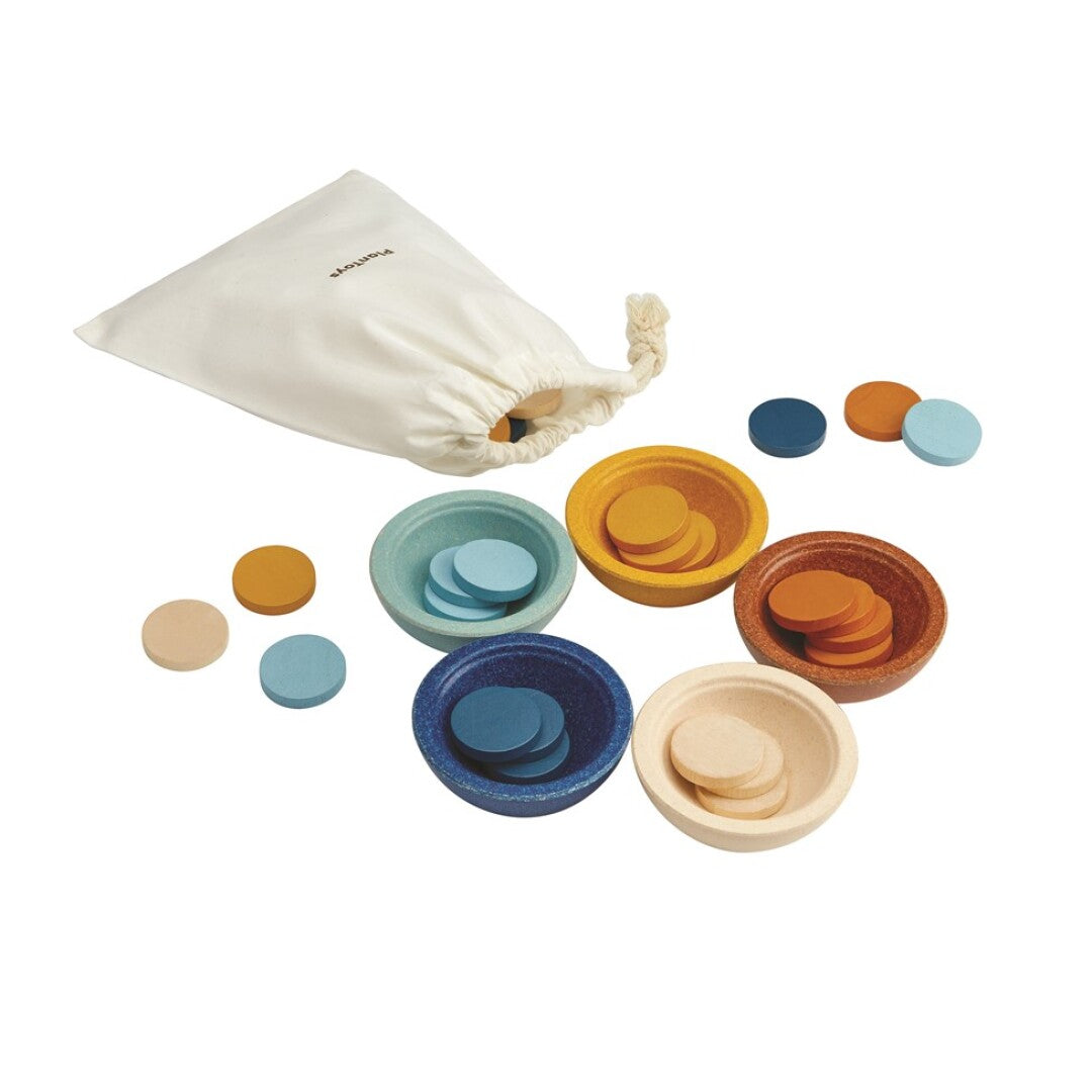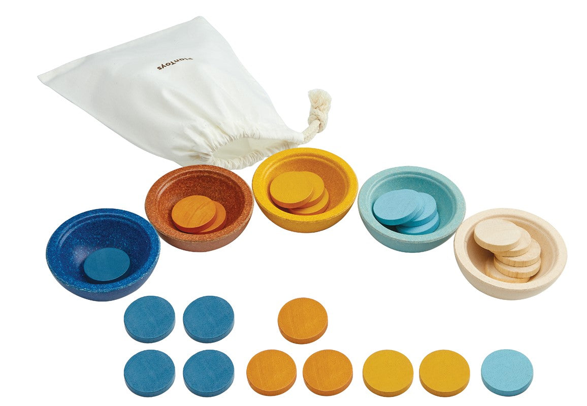 PlanToys nos trae este juego de tazas con fichas para ordenar y aprender a contar. Se puede usar de diferentes maneras. En su versión Orchard nos lleva a una paleta de colores diferente.